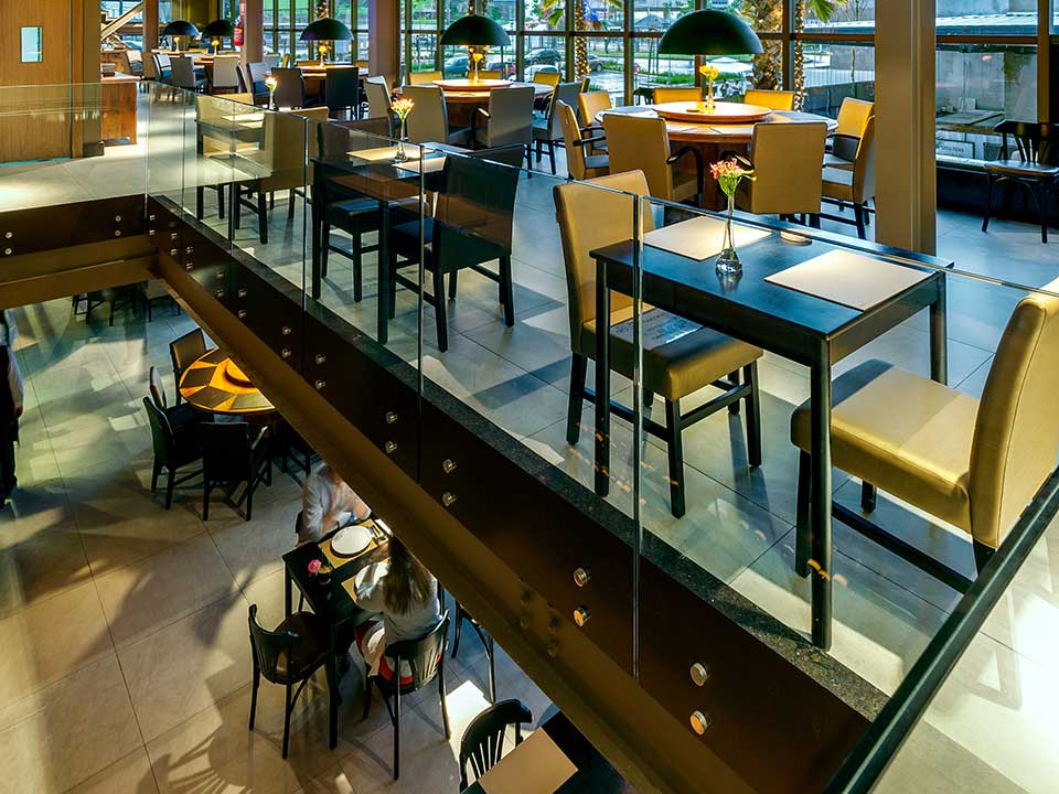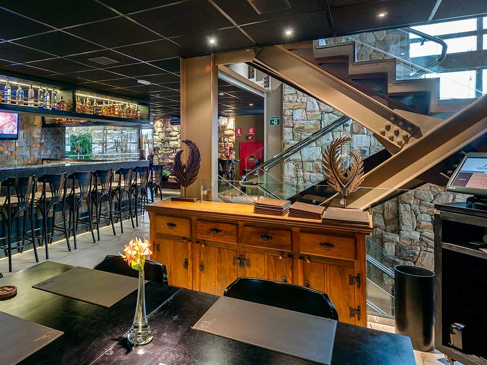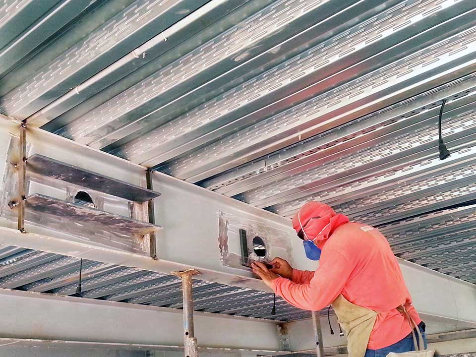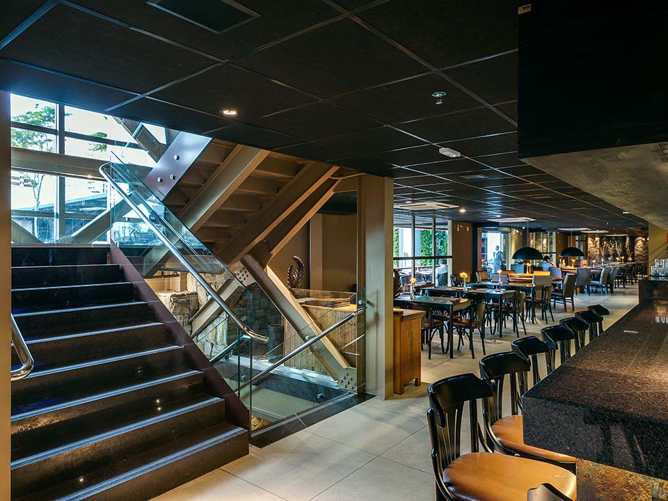 OBRA: Cobertura de restaurante com mezanino, escadas e marquise
