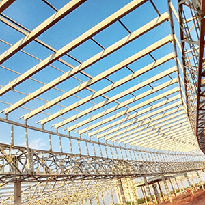 OBRA: Estruturas metálicas com treliças de cobertura para sete galpões de shopping center.
